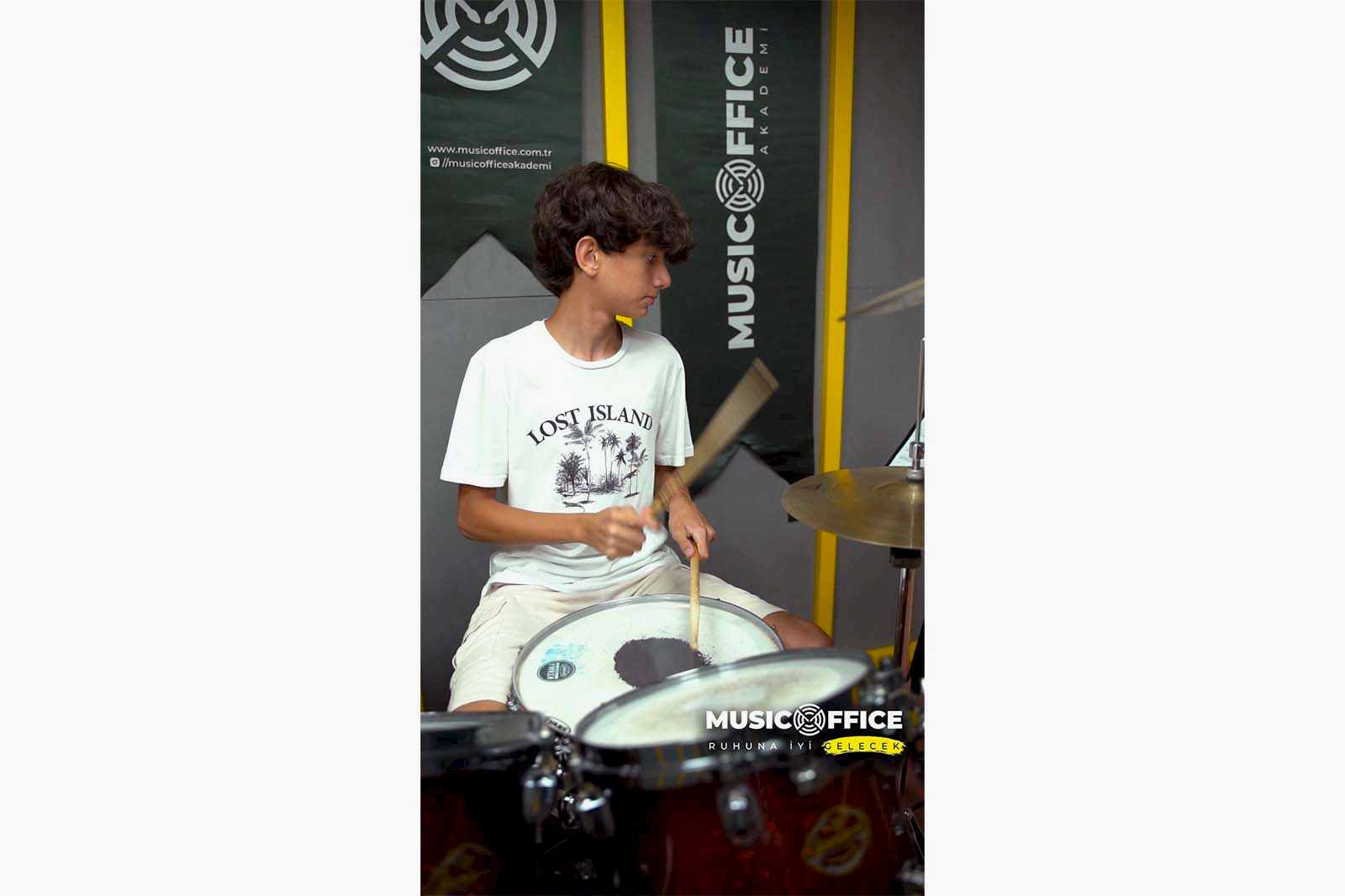 Musicoffice Akademi'deki bateri dersleri, öğrencilerin hem teknik hem de müzikal becerilerini geliştirmeyi amaçlar. Derslerde, rock, pop, jazz, funk ve daha birçok müzik türünde çalışarak geniş bir repertuar oluşturulur. Ayrıca, öğrencilerin grup performanslarına katılarak müzikal iletişim becerilerini geliştirmeleri teşvik edilir. Bateri, güçlü ve dinamik bir enstrüman olduğu için derslerimizde öğrencilerin ritim duygusunu en üst düzeye çıkarmaları sağlanır.